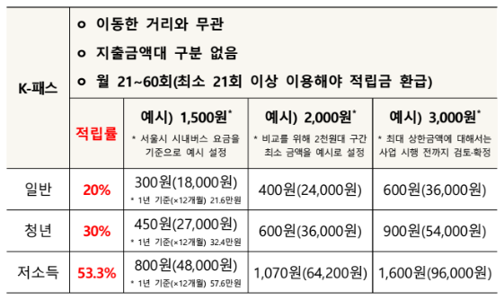 - 정기적으로 대중교통을 이용한다면, 월 15회 이상 사용하여 환급률을 최대화하세요.